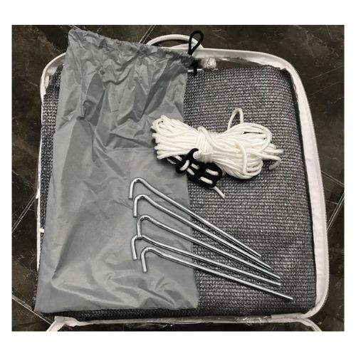This screen is compatible with most roll-out awning brands that allow a 6mm spline. The shade screen comes with what you need for installation, including guy ropes and steel zinc-plated pegs, plus a convenient carry bag.