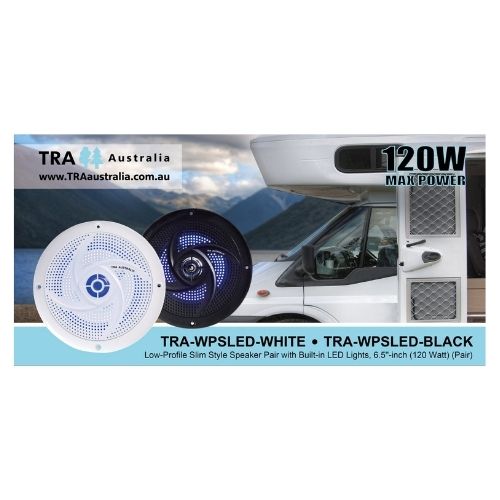 Looking for tunes that travel with you? Do just that with the Black LED 6.5 Inch Waterproof 120 Watt Low-Profile Speaker (Pair). Sold as a pair and in a stylish black colour, they’ll suit your RV style, whether it’s modern or retro. Not only are they waterproof, but they’re also low-profile and boast 120 Watts, so you can enjoy premium sound at any and every destination on your trip.