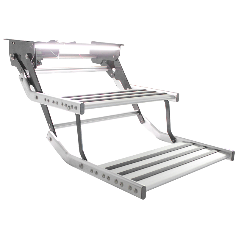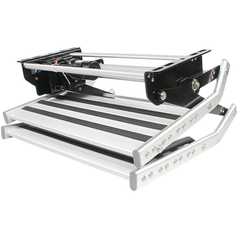 A double 12-volt electric current powers the electric caravan step with LED light and features a built-in LED light to improve visibility in low-light conditions. This type of step is usually operated by a switch located inside the door and is mounted to the exterior of the vehicle. When not in use, the step can be retracted and remains flush with the vehicle’s body, helping to reduce wind resistance and improve fuel efficiency while driving.