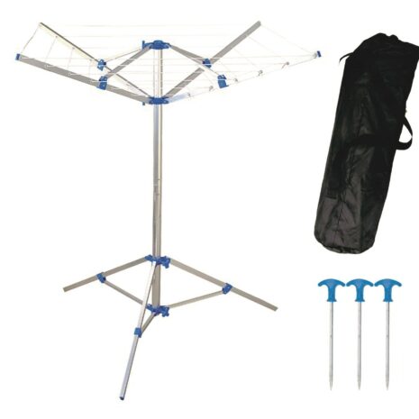 Drying clothes while on the go can be a challenging task, but it doesn’t have to be. The Portable Folding Rotary Camping Caravan Clothes Line With Carry Bag provides a convenient solution for this common problem, making it easier than ever to dry your clothes on the road. Simply hang your garments on the line, just as you would at home, and use the three screw-in pegs for added support during windy days. With this portable and efficient clothesline, you can dry your clothes quickly and effortlessly, allowing you to continue your adventures without any worry about laundry.