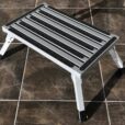 The Single Folding Portable Caravan Camping Step Stool is a well-designed and sturdy solution for those needing a portable step. The step is built with strength and stability in mind. The pin-locking mechanism keeps the legs safely in place while in use, while the rubber feet protect the flooring. The non-slip grip tape on the top surface ensures you have secure footing, even in wet weather. The compact size makes it easy to store when not in use, and its weight of approximately 3kg makes it manageable for most users. The Single Folding Portable Caravan Camping Step Stool is a reliable and practical option to make entry into your RV easier.