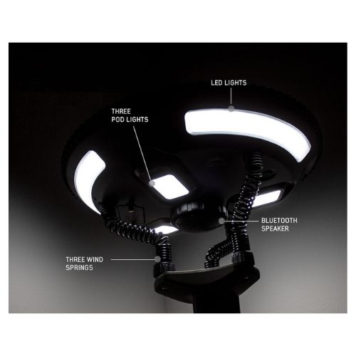 - Illuminate your campsite with our 17.5″ UFO-shaped head unit that can withstand extreme winds. Three removable light pods offer multiple settings and can be charged through the UFO or independently